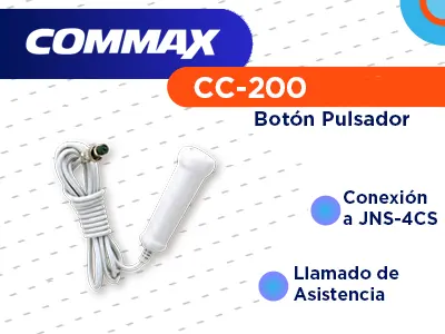 El accesorio modelo CC-200 de la linea de enfermería de COMMAX se conecta a la subestación adjunta en la sala y sirve de ayuda en la comunicación con el área de enfermería cuando la situación del paciente le impide levantarse de su cama o lugar.