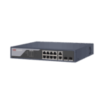 Switch PoE+ / Administrable / Uso en Rack / 8 Puertos 10/100 PoE+ / 2 Puertos 1000 Mbps Uplink / 2 Puertos SFP / Configuración Nube desde Hik-PartnerPro / Modo Extendido hasta 300 Metros / 125 W