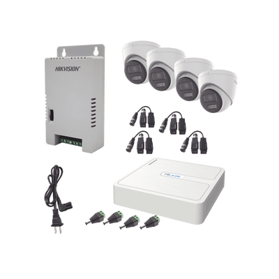 Kit HiLook Audio Bidireccional TurboHD 1080p / DVR 4 Canales / 4 Cámaras Eyeball (Exterior) con Bocina y Microfóno Integrado / 1 Fuente de Poder / Accesorios