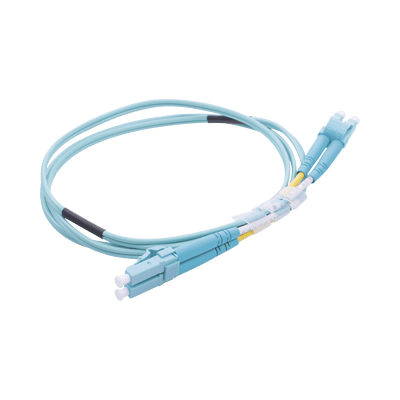 Jumper de Fibra Óptica Multimodo OM3 50/125 LC-LC OFNR (Riser), 2.0 mm, Dúplex, Aqua, 1 metro