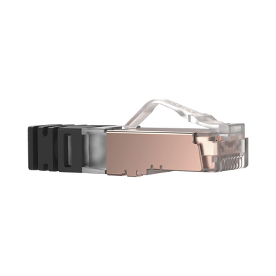 El Plug modular blindado de Categoría 6/Clase E, de 8 posiciones y 8 hilos, se puede terminar en cable de par trenzado blindado sólido o trenzado Panduit de 4 pares, 24-26 AWG, de 100 ohms con un diámetro máximo de aislamiento del conductor de 0.040 pulg. (1.02 mm) y diámetro máximo de forro de 0.250 pulg. (6.35 mm).