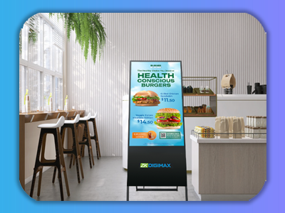 La ZKDIGIMAX DG03A2F43 es una pantalla LCD vertical tipo portable signage banner, diseñada para transformar espacios comerciales en puntos de publicidad visual atractiva y moderna. Con un formato de 43 pulgadas, resolución Full HD y sistema Android 11 integrado, es ideal para supermercados, tiendas de ropa, restaurantes o cafés. Puede mostrar promociones, videos, menús o anuncios sin necesidad de reproductores externos, gracias a su sistema todo-en-uno.